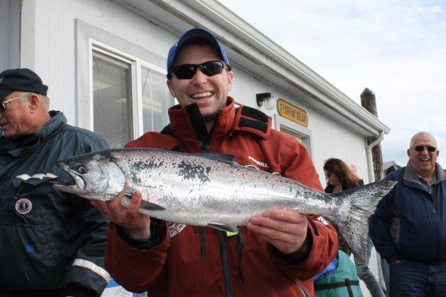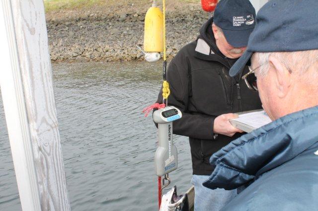 Olympic Peninsula Salmon Derby rules call for a 3pm weigh-in deadline so after a late start…it was an quick trip to the scale where lucky anglers were lined up to enter their fish.