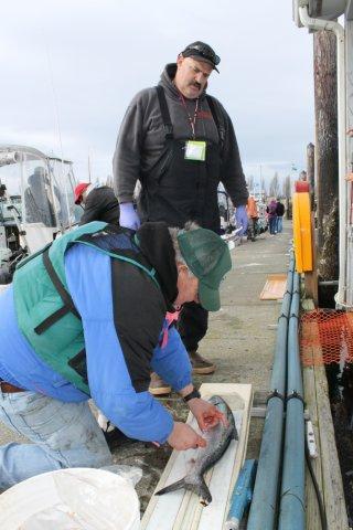 After my 8.9 pounder was weighed in, WDFW personnel were there to scale sample and measure the hatchery chinook entered in the event.