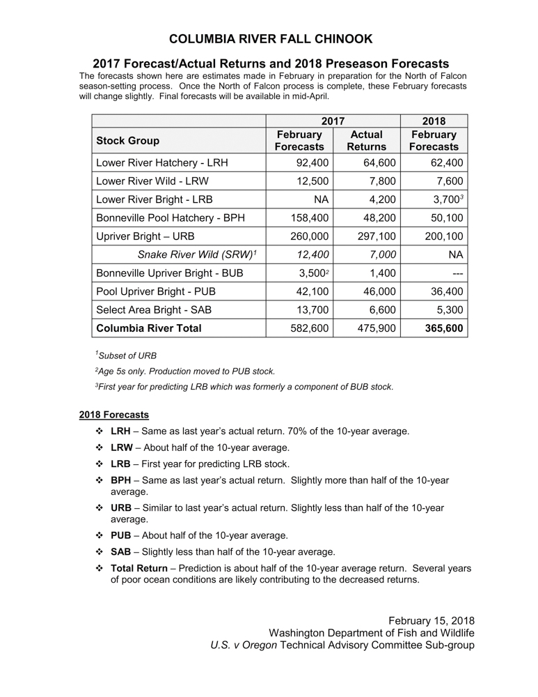 2018 Columbia River Fall Chinook Forecast