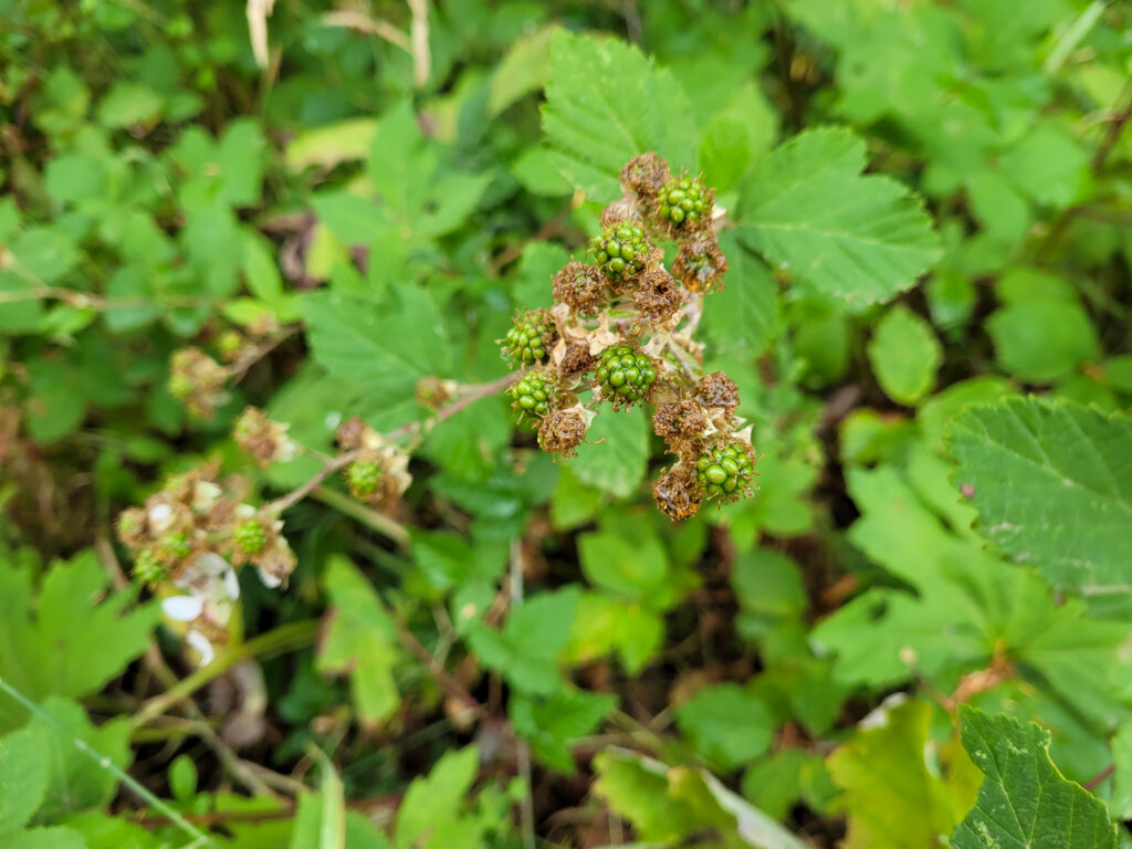 Wild blackberries are mostly the native trailing blackberry variety which are smaller berries and often come on later than the commercial or common blackberry. The latter has been ripening up nicely for the past few weeks or so while this past weekend I found the trailing variety at 3,500 feet to still be very green. Look for blackberry patches below 3,500 feet for now to find bears.