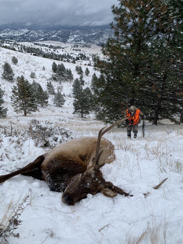 Any time you can get an elk out whole it’s a win. Rolling this bull into a Shappell “Jet Sled” made getting this bull down to the road ahead of a snowstorm a welcome relief!