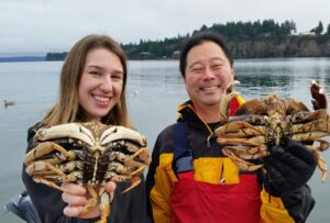 The daily catch limit in Puget Sound is five Dungeness crab, males only, in hard-shell condition with a minimum carapace width of 6¼ inches. Anglers can also keep six red rock crab of either sex daily, and must measure at least 5 inches across.