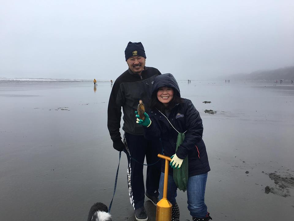 Sylvia Tsang of Mercer Island holds up a razor clam she dug from Mocrocks Beach.