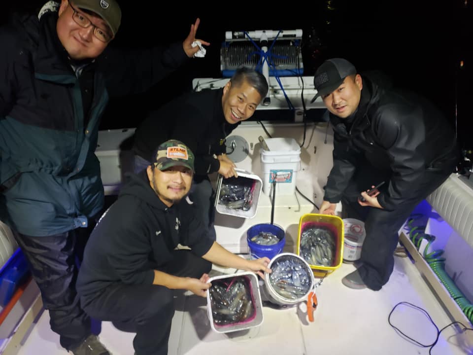 A successful night of squid jigging for this crew! Photo courtesy of Paul Kim.