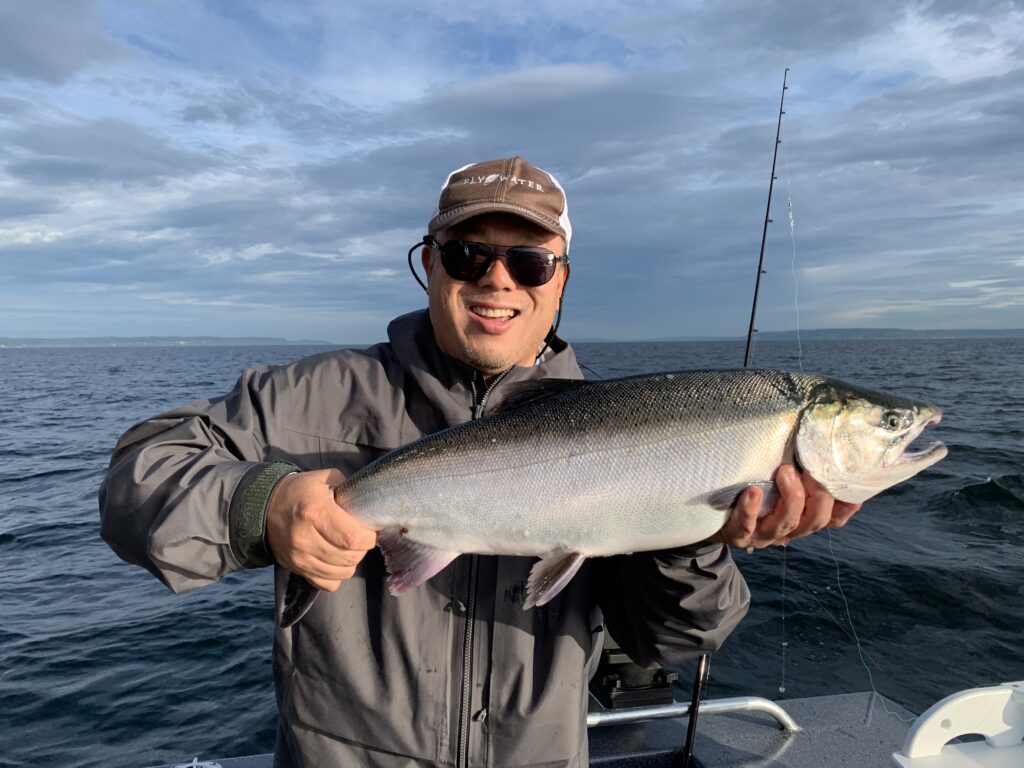 Nice coho like this one caught by Taichi Kitamura owner and chef of Sushi Kappo in Seattle’s Eastlake area off Edmonds are still moving into Puget Sound.