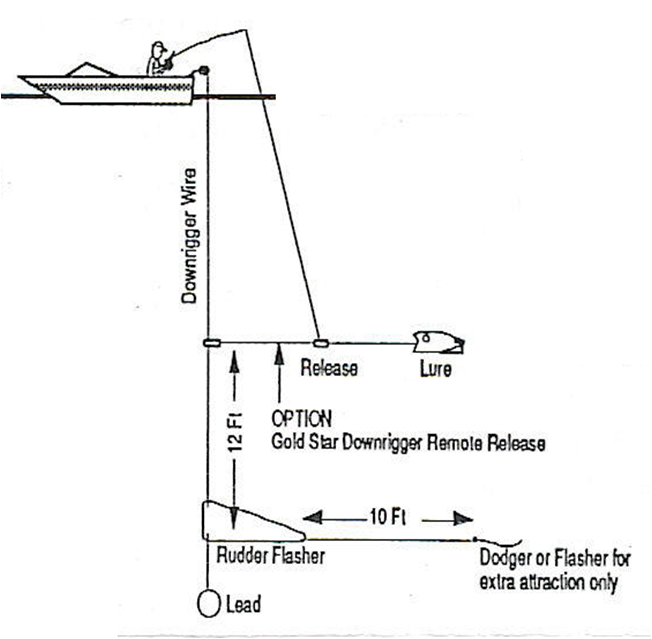 …and two, running a “Dummy” or remote flasher off of the Rudder Flasher and then stacking your release a few feet up from the flasher!