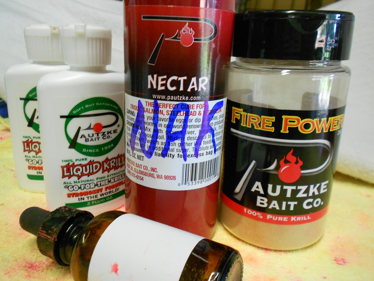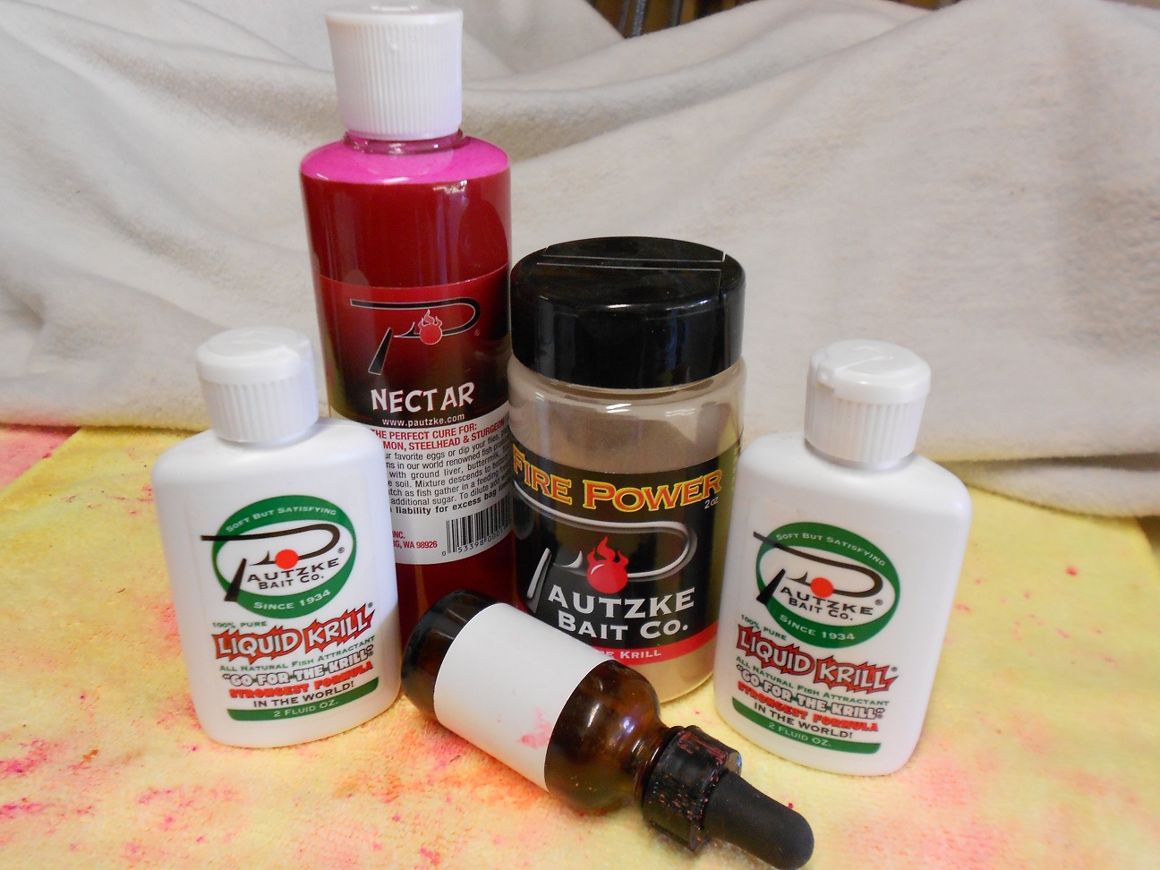 Bottled salmon egg juice is your friend. It comes in five colors. However, for fall salmon red is my favorite. I also invest in krill, the liquid form (Liquid Krill) and powder form (Fire Power).