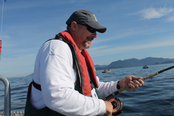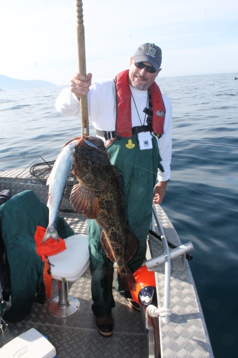 If you’ve ever had a greedy lingcod grab on to a smaller fish and not spit it out  at the boat, then you understand the look on Dave Wyman’s face. If he wasn’t hooked on the non-stop Haida Gwaii action before, he certainly is now!
