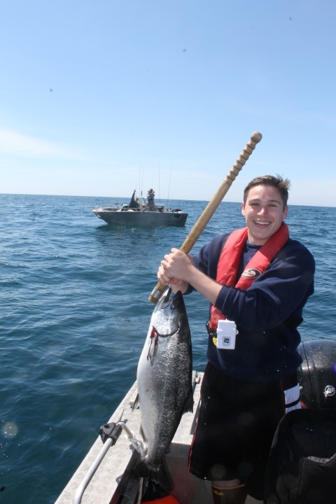 You can only catch your first chinook once in your life and it was a very special moment to be on hand for Jake Wyman’s king salmon number one! Proud father Dave Wyman is in the boat in the background in this shot.