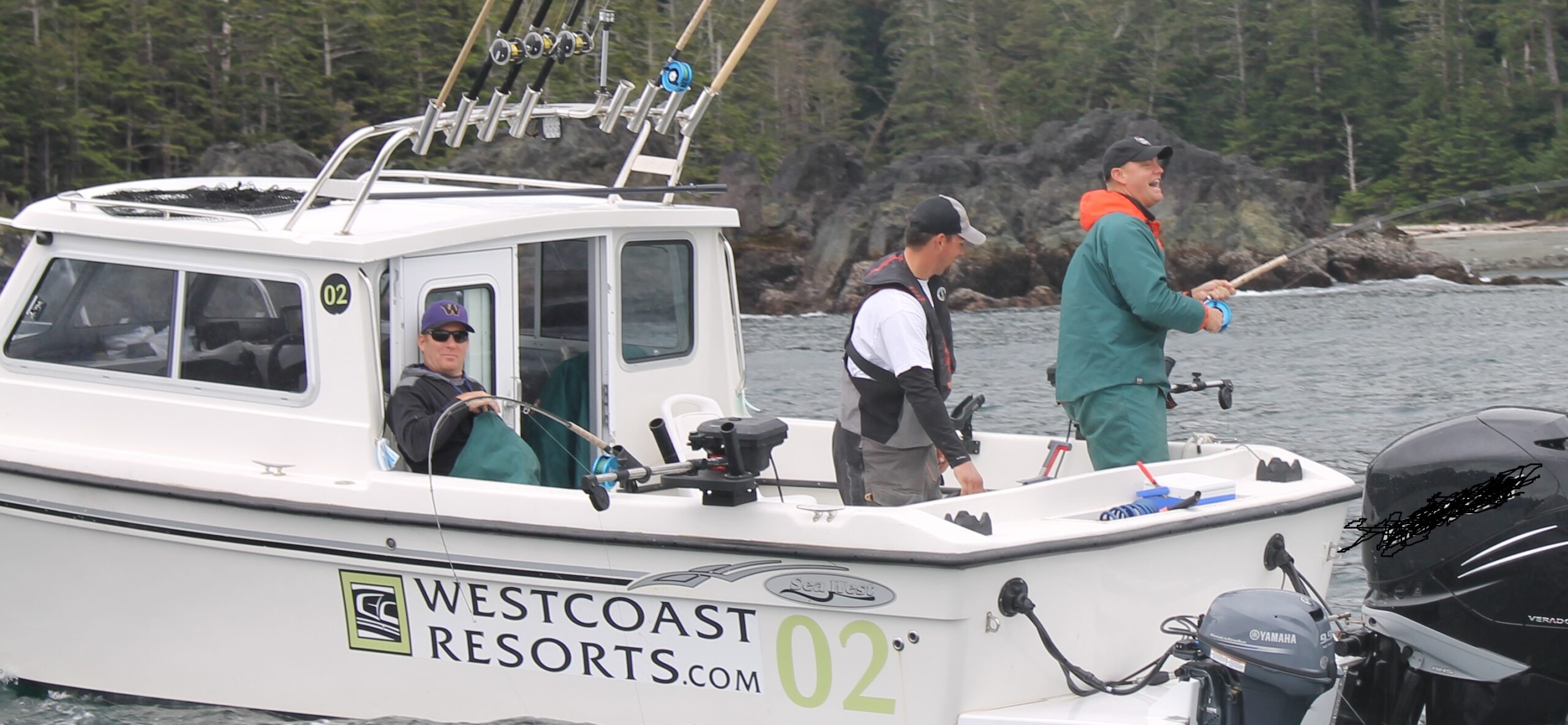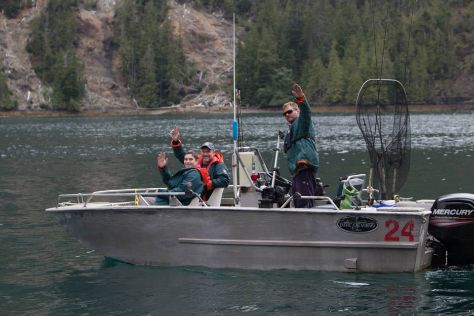 Jake Wyman, Dave and our guide “Yeti” head out from the lodge on Father’s Day afternoon for their first Haida Gwaii fishing experiece.