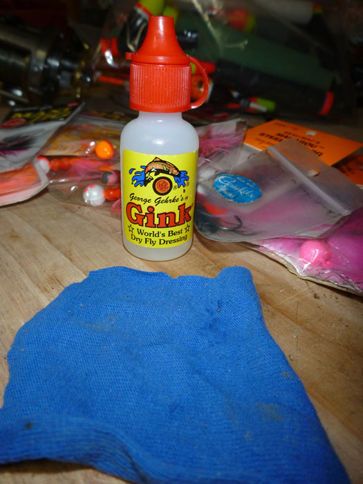 This stuff wears off after a while, so you’ll want to pack some fly floatant and a small patch in your vest or tackle box so you can apply it every so often. If I’m bank fishing for salmon or steelhead I always have some with me.