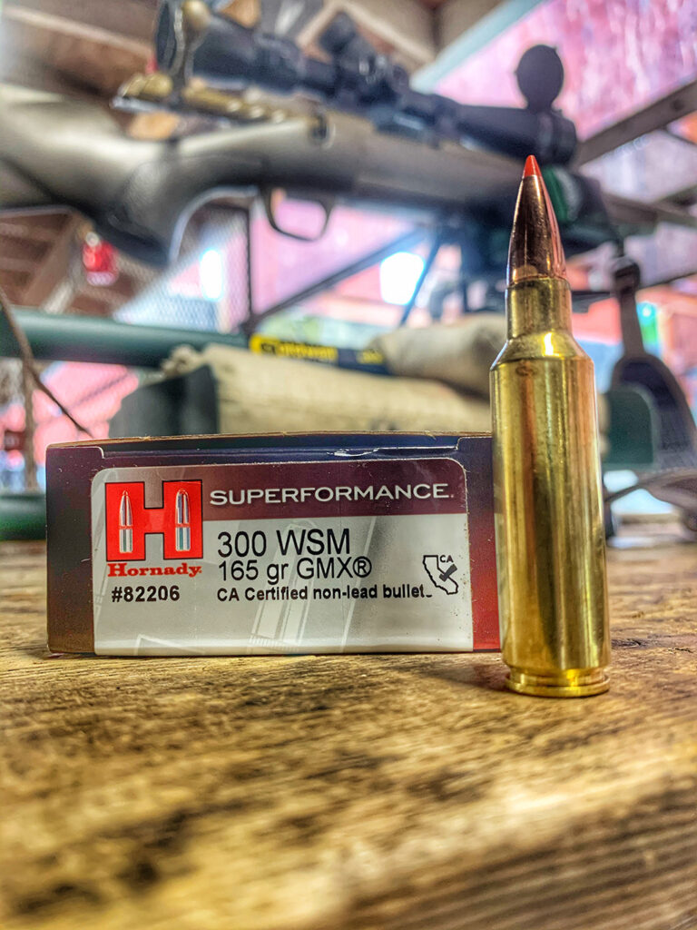For shots under 500 yards you can’t go wrong with Hornady GMX ammunition. These are gilded copper alloy bullets that maintain 95% of their weight retention, expand 1.5 times the original bullet diameter, and have a boat tail for optimum accuracy. Both the GMX and the ELDX line of bullets from Hornady have been deadly for me in the field.