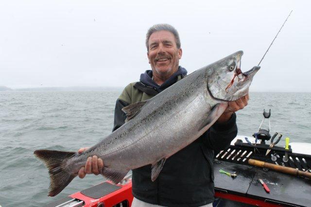 For the past few years, our largest chinook of the season has come from Buoy 10 and this year was no exception. Here, Phil Michelsen is all smiles with this chrome upriver bright 34 pounder!