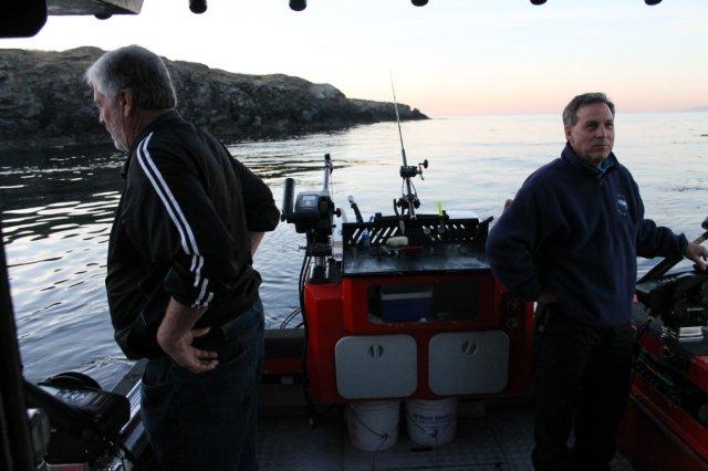 Local, late August chinook opportunity leads us to look north and west. Here, two San Juan angling legends Larry Carpenter and John Martinis jump on board Big Red for a morning on the west side of San Juan Island.