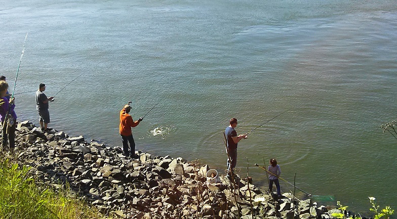 Some of the best fishing occurs along the rip-rap shoreline just below Bonneville Dam, but shad are spread out in the Camas Slough, and from Washougal downstream to Kalama.
