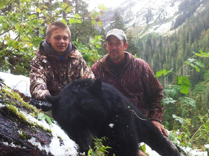 After two years of perseverance hunting the rugged west slope of the Cascades in Whatcom County 14 year old Justin Miedema finally got a chance at his first black bear. Justin took the 250 pound black bear at 370 yards with a 140 grain bullet from his .270. “The bear just folded after the shot,” said Eric Vanhofwegen who was along on the hunt.