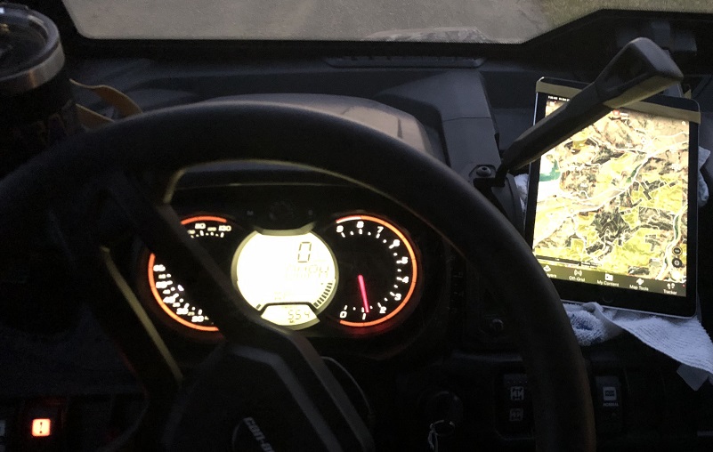 …and that AP is OnX Hunt loaded on to an iPad secured to the dash of the Defender ATV. OnX Hunt has an “off-grid” mode that allows you you download high resolution maps of your hunting area which are then available for use in areas without data coverage.