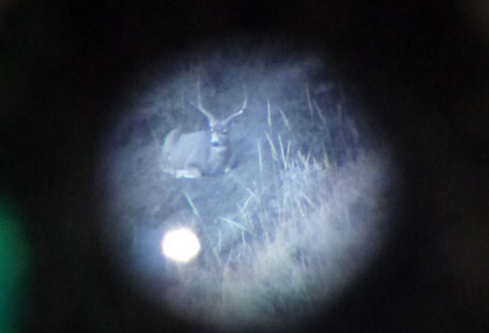 I happened to grab the photo below by placing my small digital camera over the eyepiece of my spotting scope. I spotted this buck in his bed at around 900 yards. It was one of many on this trip.