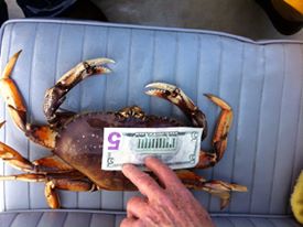 The daily limit in Puget Sound is five male Dungeness crab in hard-shell condition with a minimum carapace width of 6¼ inches. Fishermen may also keep six red rock crab of either sex daily. Red rock crab must measure at least 5 inches. For additional details and regulations, go to https://wdfw.wa.gov/fishing/shellfishing-regulations/crab.