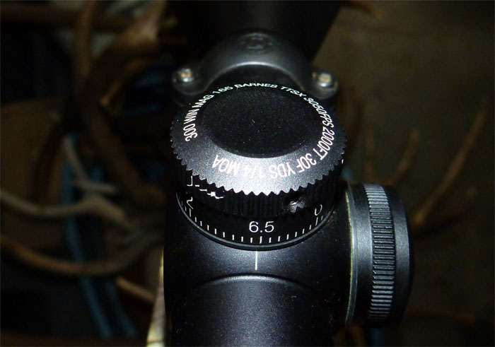 I sighted this .300 win mag in with Federal ammunition in a 165 grain Barnes bullet and my dial covers are set for shots up to 650 yards. The difference in the sight-in process when you’re getting set up for custom dial covers is that you sight in dead-on at 100 yards instead of holding two or three inches high. I took two trips to the range to get this bad boy dialed in at 100 yards. This .300 Win Mag is a tack driver!