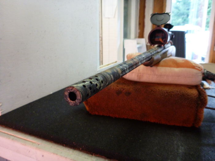 Here’s the finished product and you can see the muzzle break and the heavy fluted barrel in this photo.