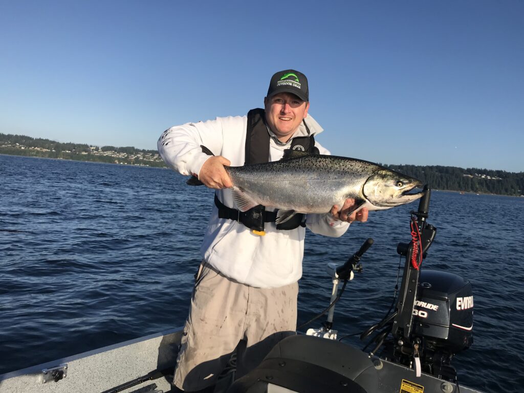 “It started off with guns blazing with some very solid catch rates for hatchery chinook,” said Gabe Miller, a Sportco & Outdoor Emporium fishing and marine buyer who stores his boat at the Point Defiance Park Boathouse in Tacoma. “Fishing has slowed down since then, and there are some pretty good sticks out there on the water and what everyone is saying is that it seems like the big tides have affected success.”
