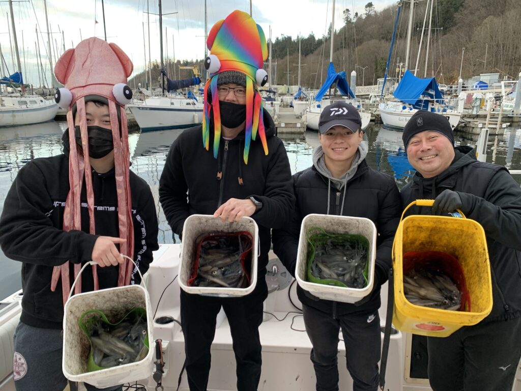 Anglers are hopeful the slow action will eventually improve to provide a bucketful of catches like these four experienced in November of 2020 on an afternoon trip to Elliott Bay. Photo courtesy of Paul Kim.