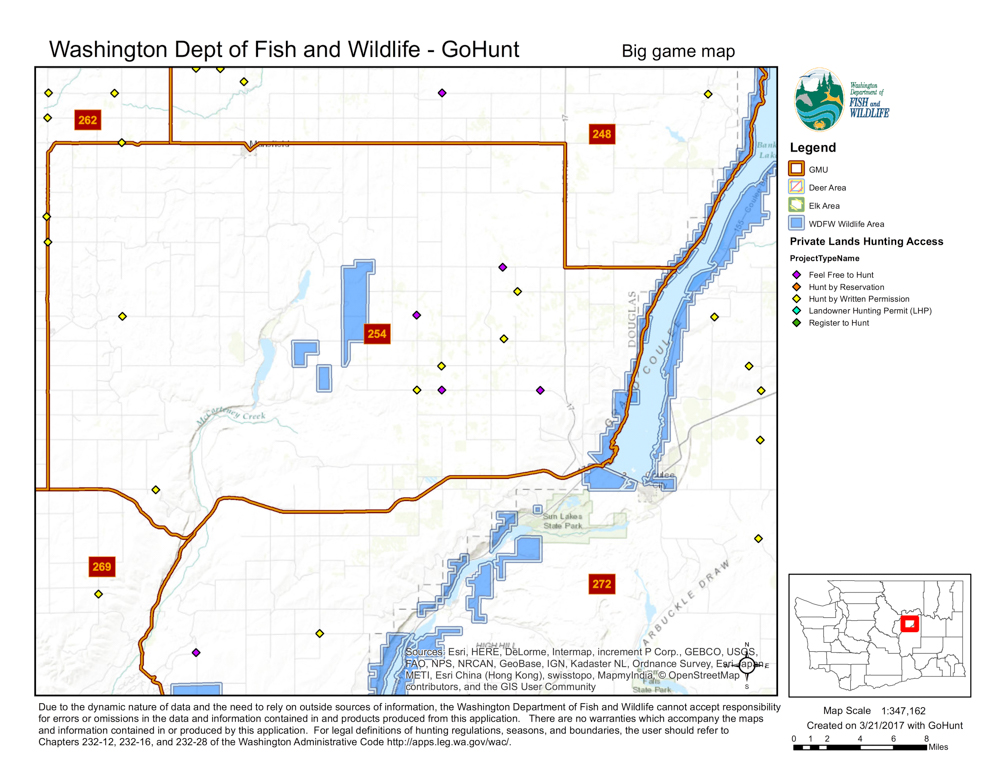 Start with your state’s Fish and Game website and their hunt planning tools. For Washington it is the “Go Hunt” feature at the WDFW Hunting Tab. On this planner you can find public lands, private lands that allows access, integrated maps with satellite photos, roads, unit boundaries and harvest data.