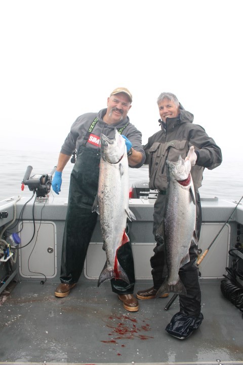 Lifelong friend Larry Stauffer and I doubled up on a couple chunky chinook that both fell to trolled whole herring. Overall, the average size of the chinook we encountered was larger which was a reverse of a trend of smaller fish over the past several years.