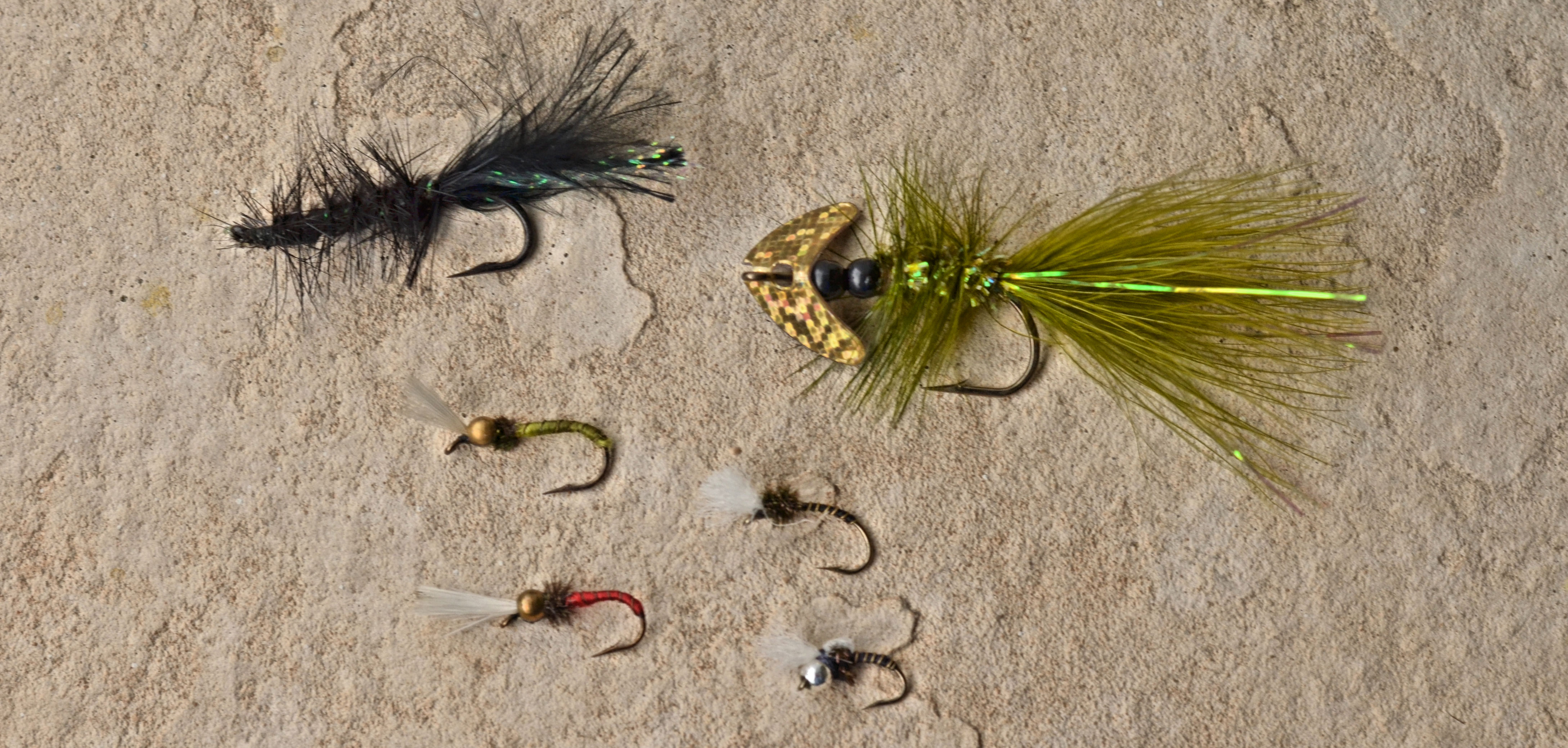 Casting and slowly stripping in a fly or trolling them; using flies in the right water conditions and the right time of day is a lot of fun and very effective. This time of year it’s a wet fly game unless you get a really warm day and just at dusk and start to see fish rising. My main flies are the Mack’s Lure Smile Blade Fly (a whooly bugger with a small smile blade at the eye of the hook), Carey Specials, and Chironomid’s.