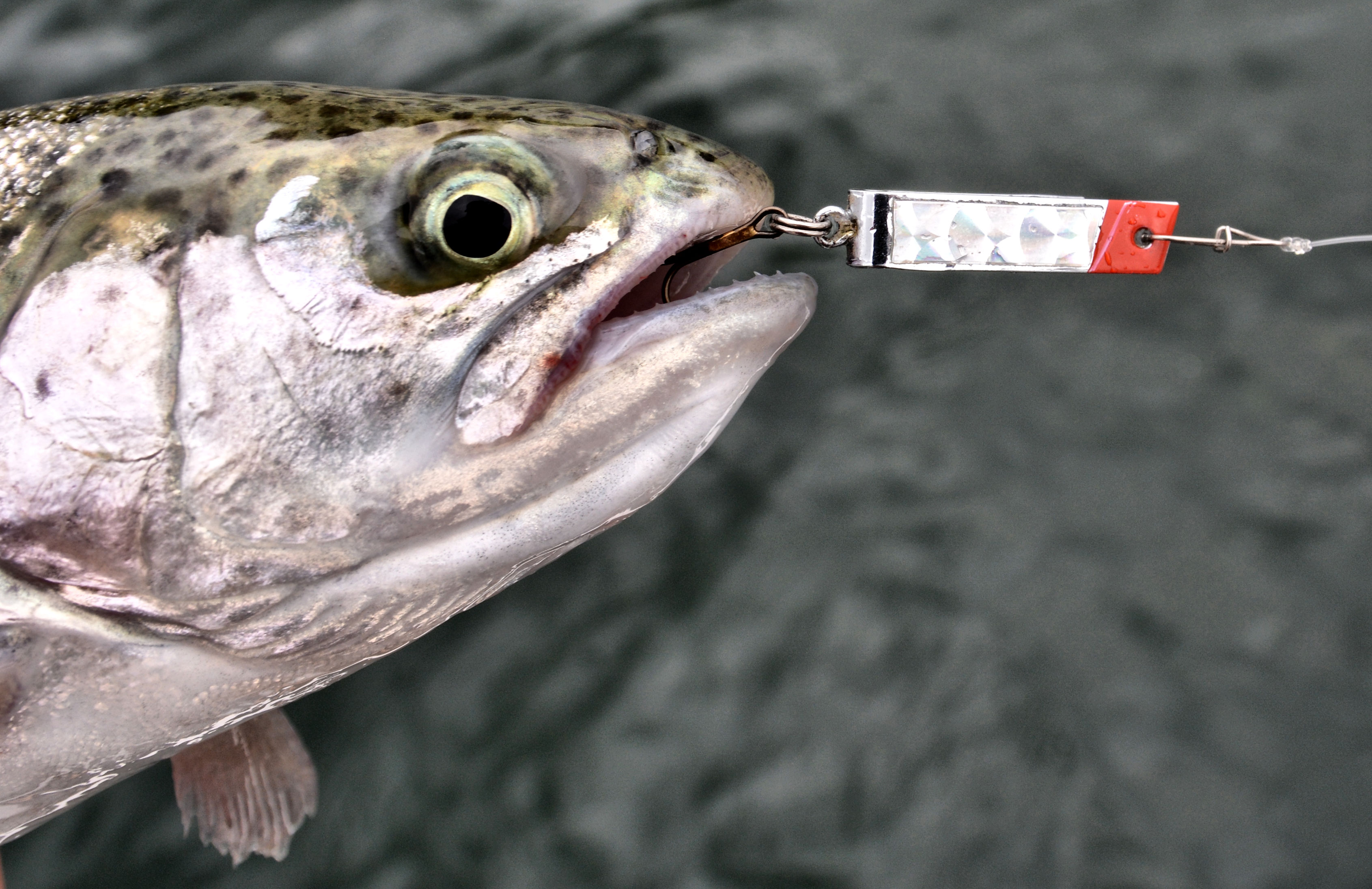 Speed is key when trolling. Slow is the name of the game for spring fishing, no matter if it’s for rainbows or kokanee. The slower you can troll and still keep your gear near the surface the more fish you will catch. My top lures are gold or silver 1 ¼” Super Duper’s by Luhr Jensen, black ¼ ounce Roostertail’s by Yakima Bait Company, and Double Whammy Wedding Ring Spinners by Mack’s Lure. In fact the Wedding Ring has probably caught more trout than any other lure when tipped with a piece of nightcrawler.
