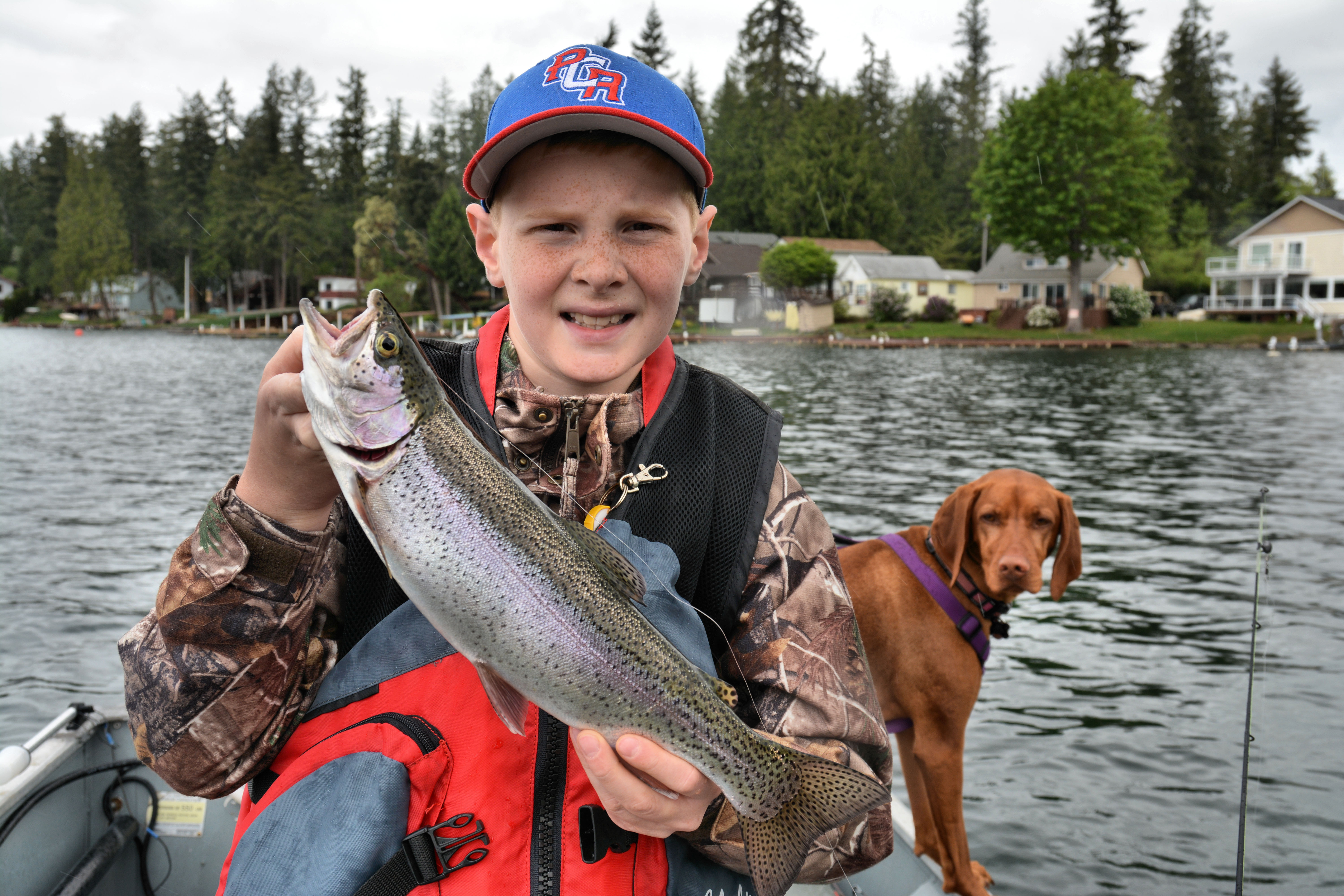 By first checking the fish plantings for your local lakes at http://wdfw.wa.gov/fishing/plants/weekly/ you will have a better idea of how many and when the trout were planted. The “when” is the most important as it takes a few weeks for the fish to acclimate to the lake after being raised in holding ponds at the hatchery. Trout typically stay near the surface when recently planted and as the days go by they slowly make their way to a more comfortable thermocline and adjust to finding the food sources the lake offers. If the lake was recently planted, fish near the surface, if it’s been over a month deeper.