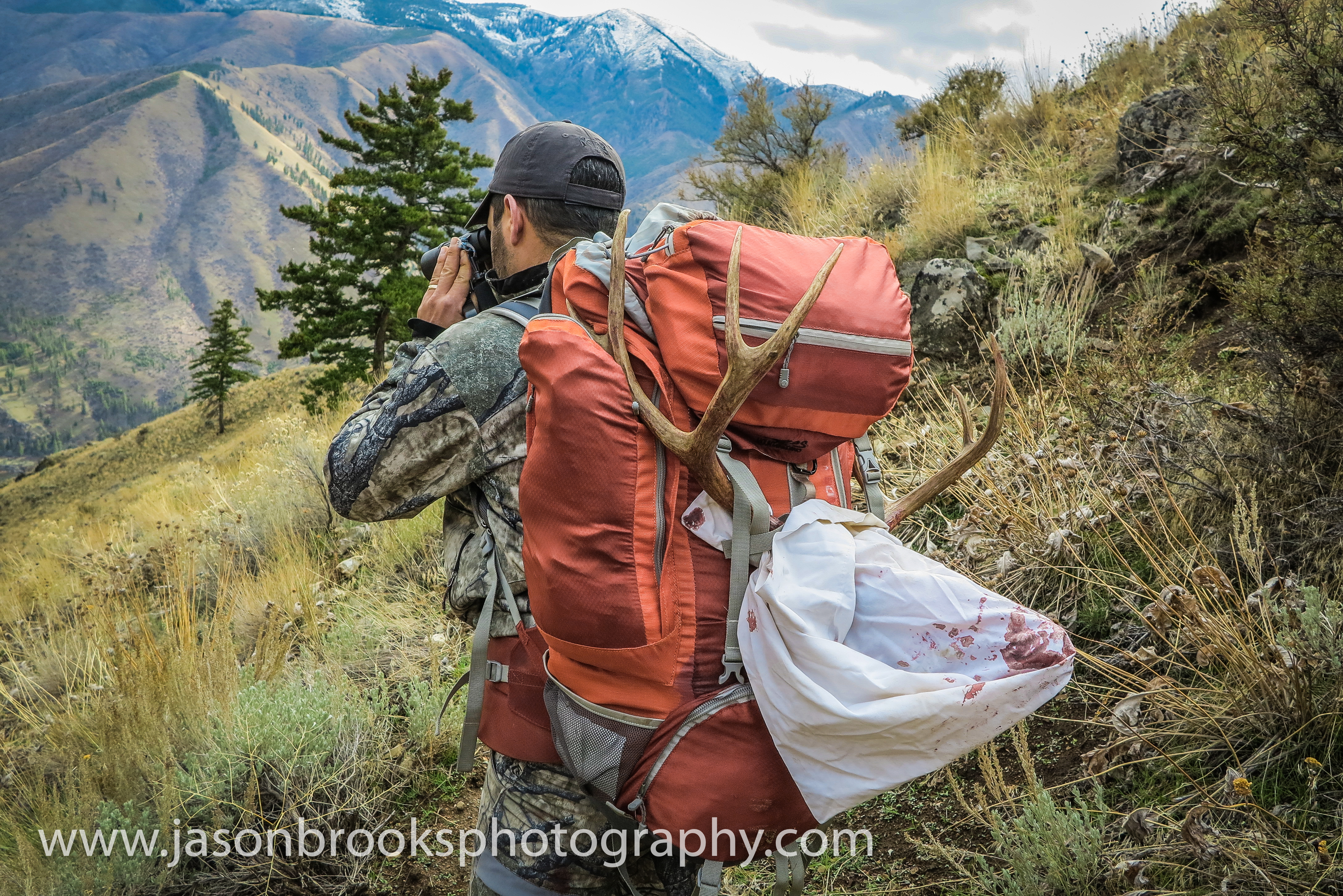 Chad Hurst packing out an Idaho buck he killed 5 miles from camp-Jason Brooks