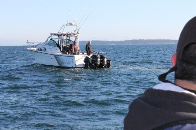 Sunday morning found us rubbing elbows with some past winners of the Anacortes Salmon Derby, Here is SJI legend Rod Nau making a close quarters pass.