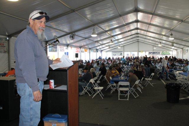 Anacortes Derby Founder, Chairman and Master of Ceremonies Jay Field prepares to get the award presentation underway in front of the 1000 participants.