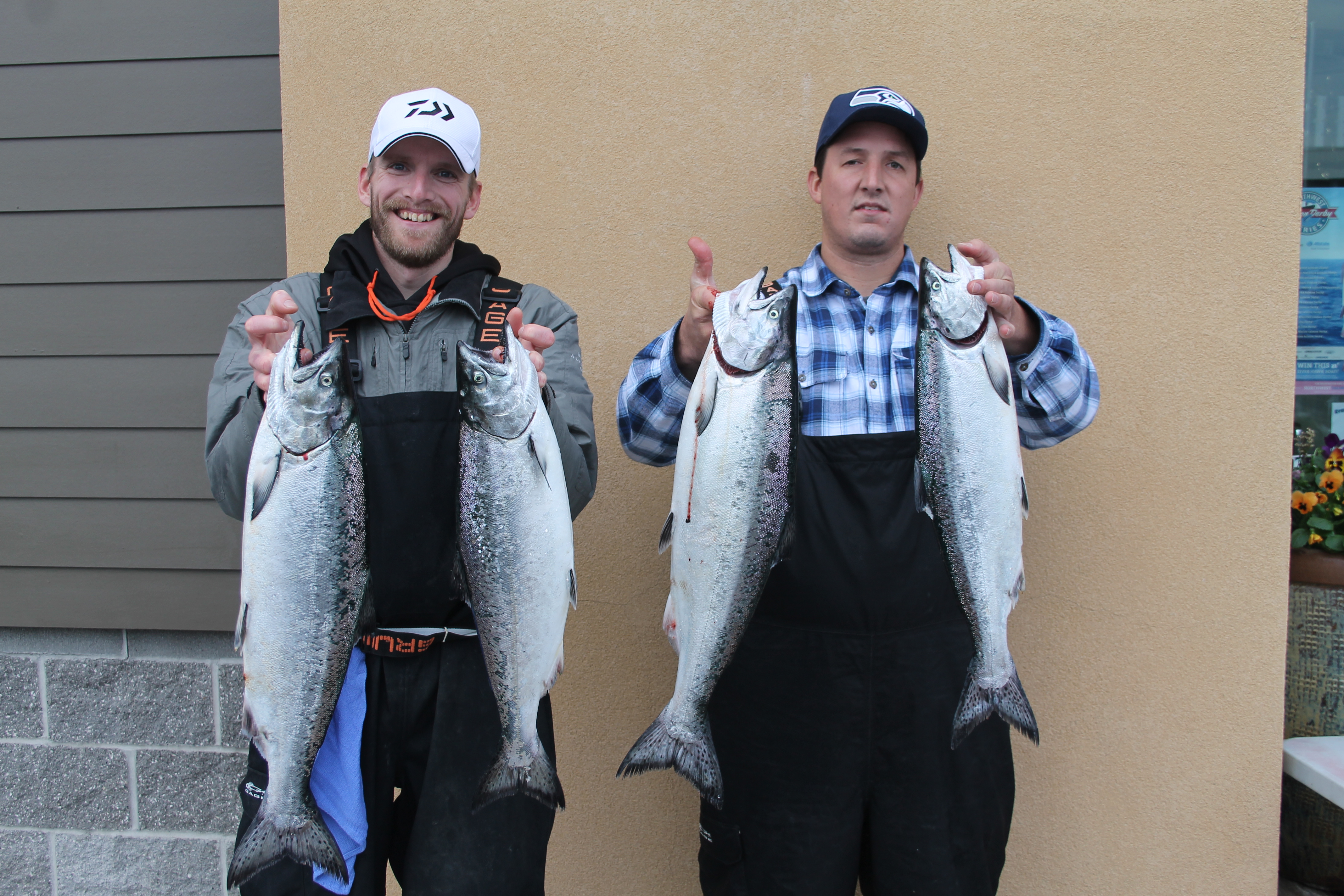 The largest chinook went to Joe Stephensen (left) pictured here with his father Ray. Joe’s winter chinook weighed just over 14 pounds and brought the happy crew $2000.00!