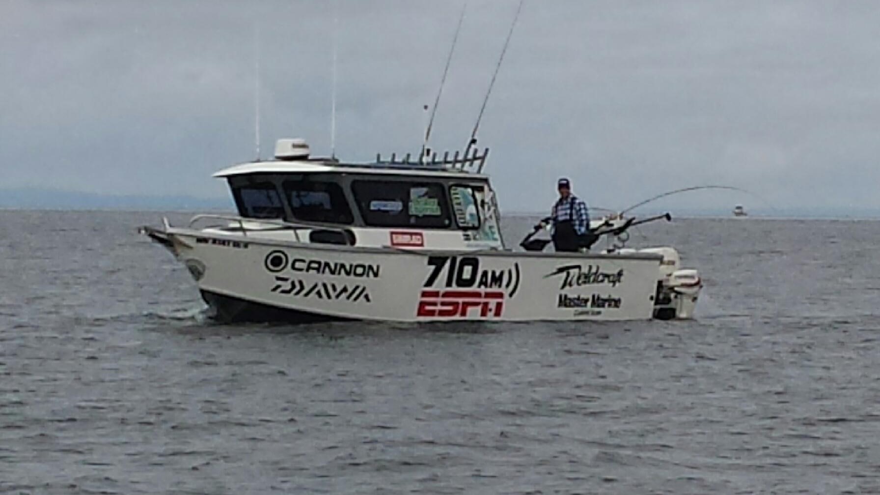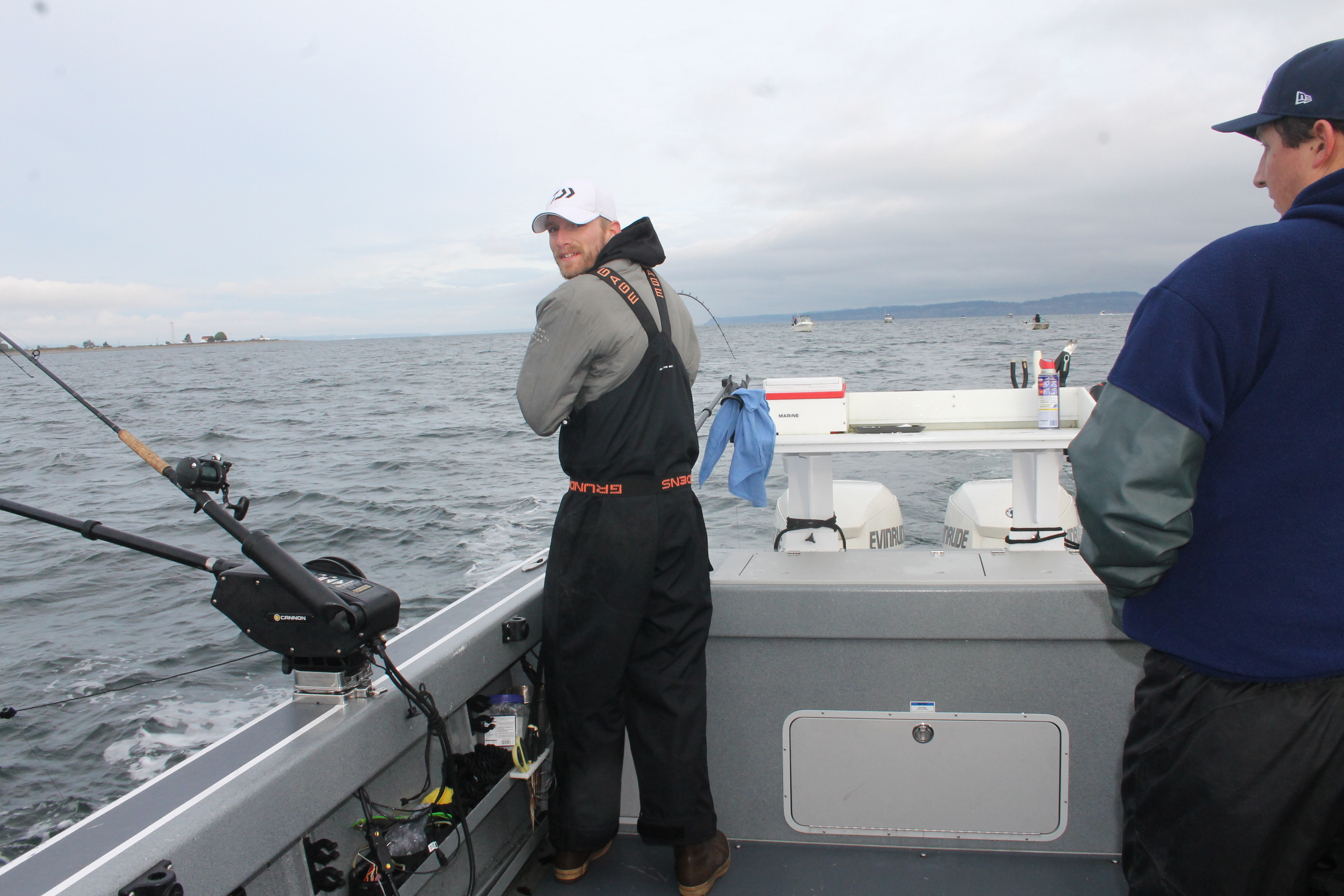 The ESPN “flagship” Great White on Marine Area 9’s Possession Bar Saturday morning. When it comes to winter chinook or “blackmouth” fishing, this is as flat calm as it gets!!