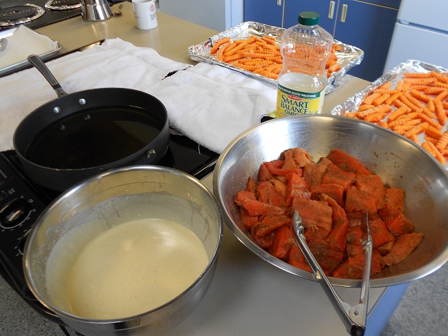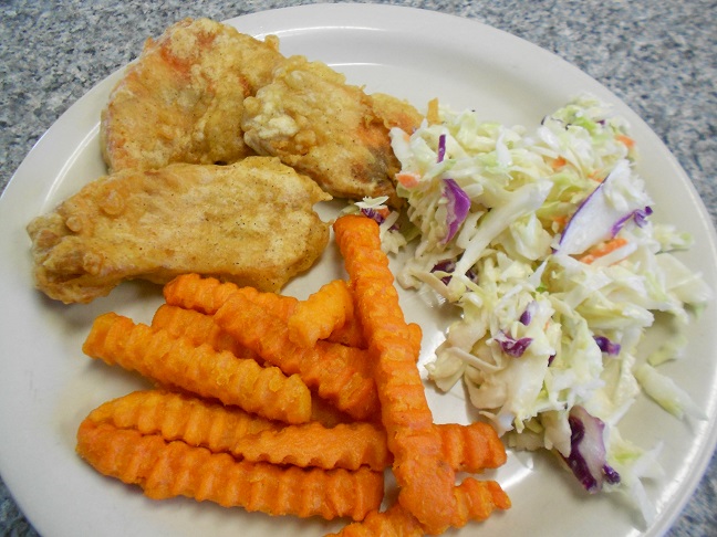 Spicy Salmon Chips with some Sweet Potato Fires and Cole-Slaw…. It doesn’t get much healthier then that for “Fish & Chips”. More importantly, the flavor will make you think twice about ever going back to Cod, when it comes to choosing what type of fish to consider to make your chips….
