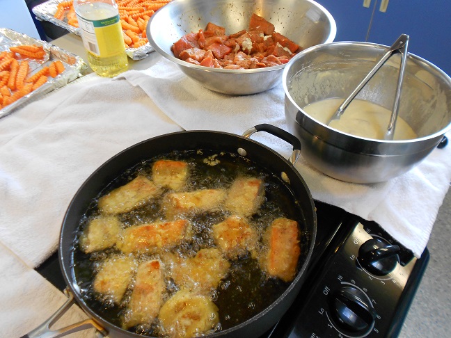 I like to use McCormick’s Fish & Chips batter. The key here is that you need to make sure you mix it thin. Extra water in the batter, is a good thing. I like a very thin layer of batter coating my fish. We have all had those pieces of fish, heavily caked in dough, soaked with oil and lets face it, they taste nasty.