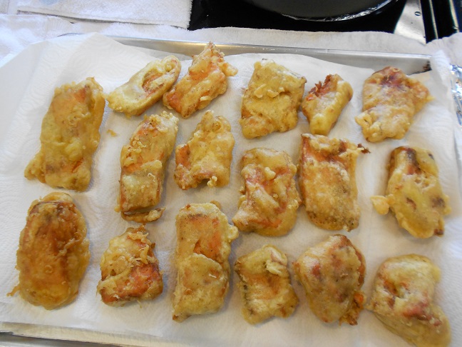 I cook the pieces of fish, until they turn that light golden brown texture I’m looking for. Then I remove each piece and place them on stacked paper towels. This helps to draw any extra oil, out of the fish.