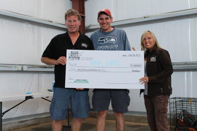 Second place and $1000 sponsored by Bayside Marine goes to Rob Byrd for his two-day total of 56.6 pounds. Here, Jeff and Annie LaLone of Bayside Marine present Rob his prize.