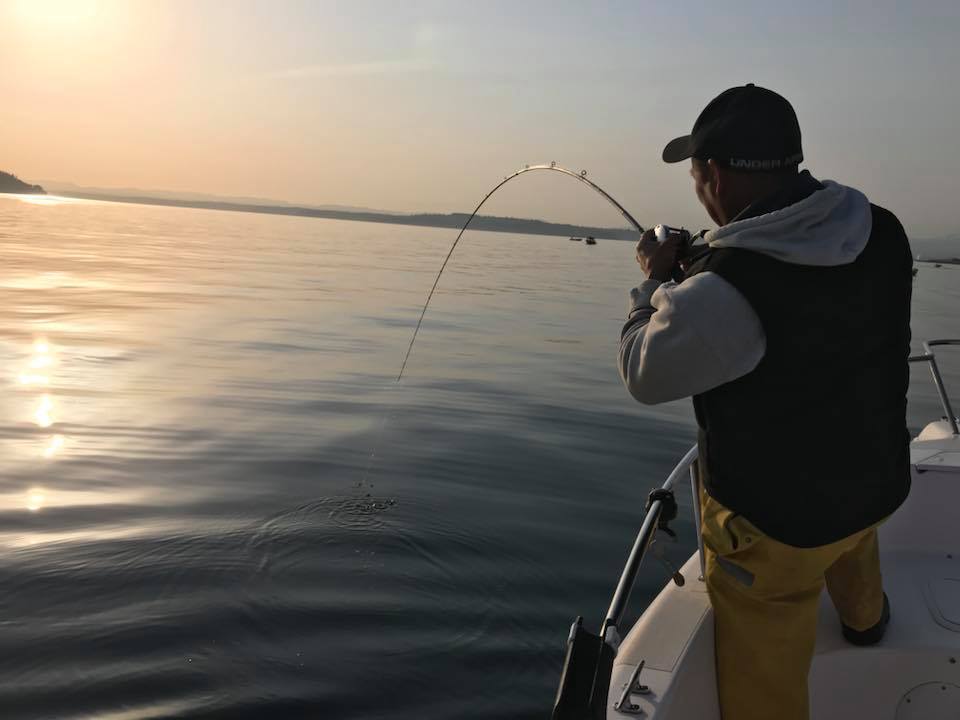 The most excitement is when a salmon grabs ahold of the bait and begins to swim up taking the weight with them. At this point it’s all about timing as when to reel to catch up to the fish until your line tightens and the rod doubles over, and the tip diving into the water. Reaction is critical because the salmon will often spit the bait once the drag becomes apparent to them.