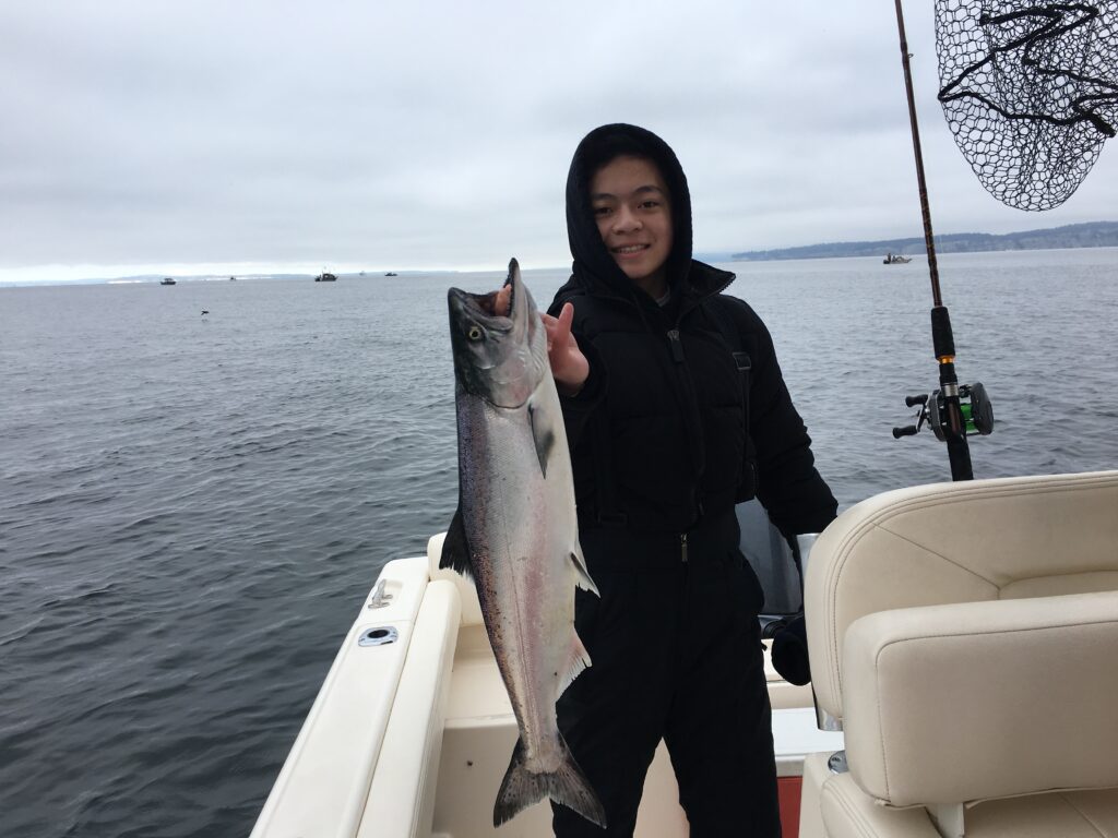 “I like mooching because it’s an active way to catch salmon from the moment we drop our lines in the water,” said Wong. “It’s also an effective way to fish simply using a lead weight, a couple hooks and bait, but there’s so much more (complexity) to it that many people don’t understand.”