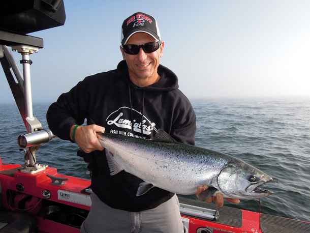 “Anchovy are a soft belly bait and they like to blow out so a lot of guys don’t run them, but we brine them up with the Pautzke’s Fire Brine, which does a real nice job at firming them up, plus it has the UV properties, which is real important when you get those baits down,” Inglin added. “We’ve also done the same with red label herring.”