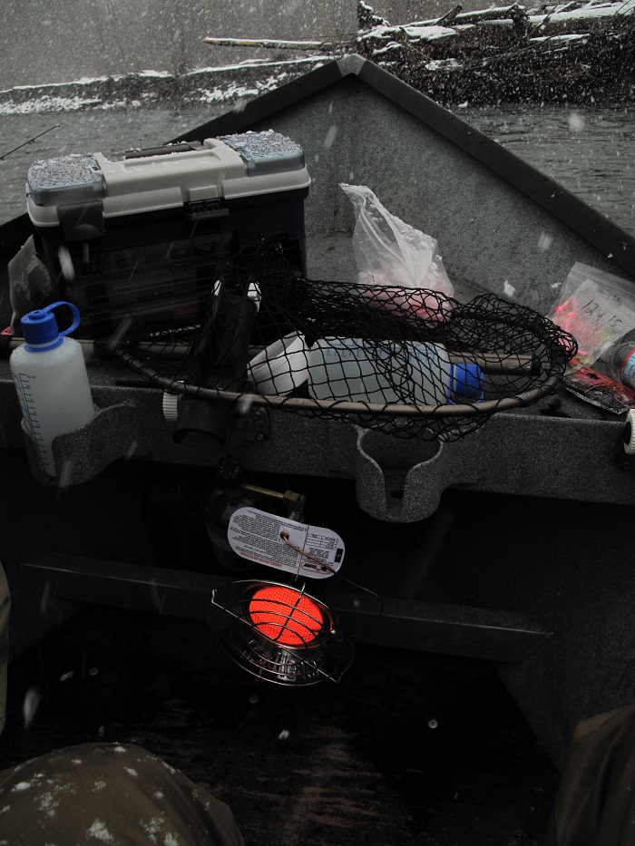 This brings us back to the argument of “glass” versus metal. I really don’t have a preference but I do own a metal boat and one of my buddies owns a fiberglass boat. Both are great boats and ironically my boat actually floats higher in the water than his does. Most think that the material matters, and to some degree it does, but so does design. His is a 16 foot by 48 inch bottom. Mine is a 16 foot by 54 inch bottom. That extra width at the bottom of the boat is what allows mine to float or draft higher and slip through in shallower waters and makes it react to rowing a bit quicker. His is “warmer” as my metal boat becomes an ice bucket during those early spring steelhead trips.