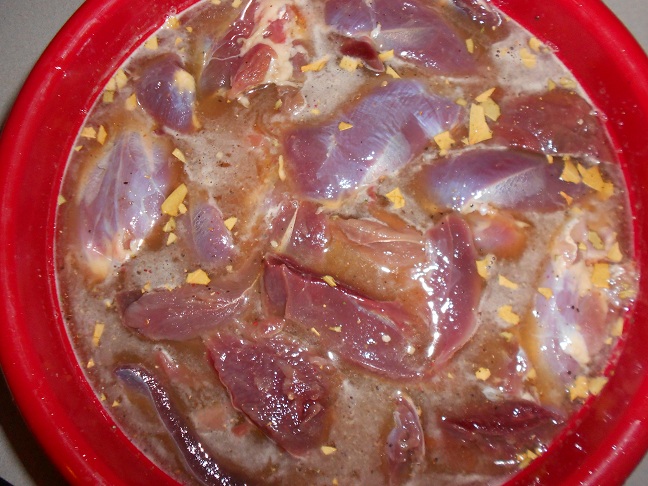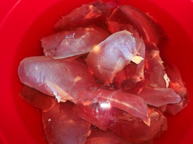 The one thing I knew for certain, is that after I breasted-out my ducks I needed to get the blood out of the meat. Robbo gave me a great tip. An over night soak in a mixture of kosher salt and water did the trick. By the next morning pretty much all the blood was out.