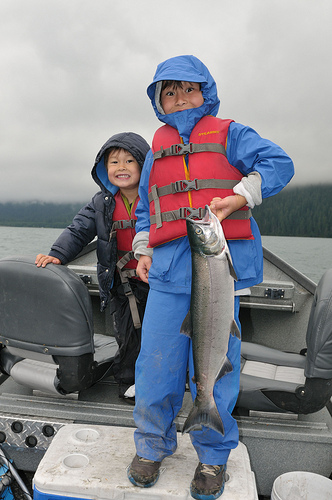 Two young anglers are all smiles after catching a Baker Lake sockeye. Photo courtesy of David Kim.