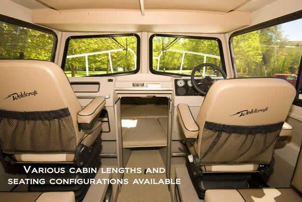 Rather than offer a few fixed designs, Weldcraft let’s you design the cabin that fits your needs perfectly. There are several cabin lengths to choose from and 16 different interior configurations to select. Everything from marine heads, to reversible dinettes, to cook stations and seating variations are available.